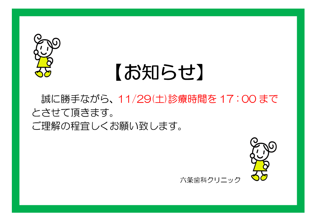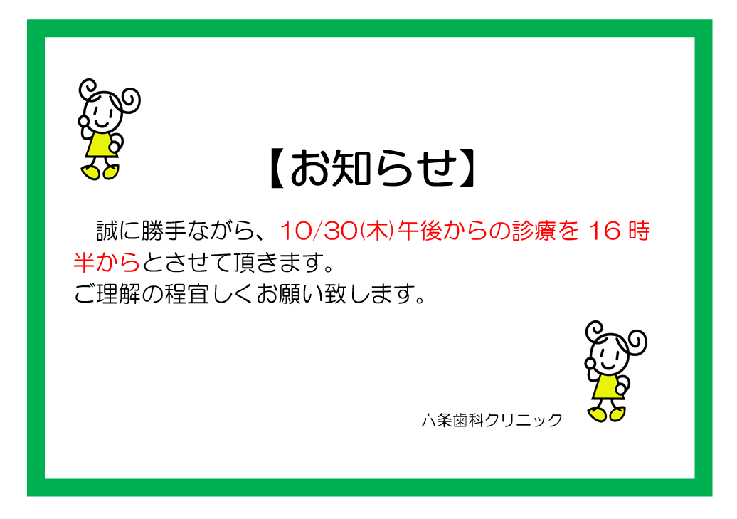 予約状況によっては、待ち時間・当日治療が困難な場合、応急処置後、後日治療させて頂く場合がございますので予めご了承ください。